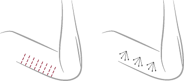 팔 안쪽 및 복부의 탄력 감소 부위에 일정 간격으로