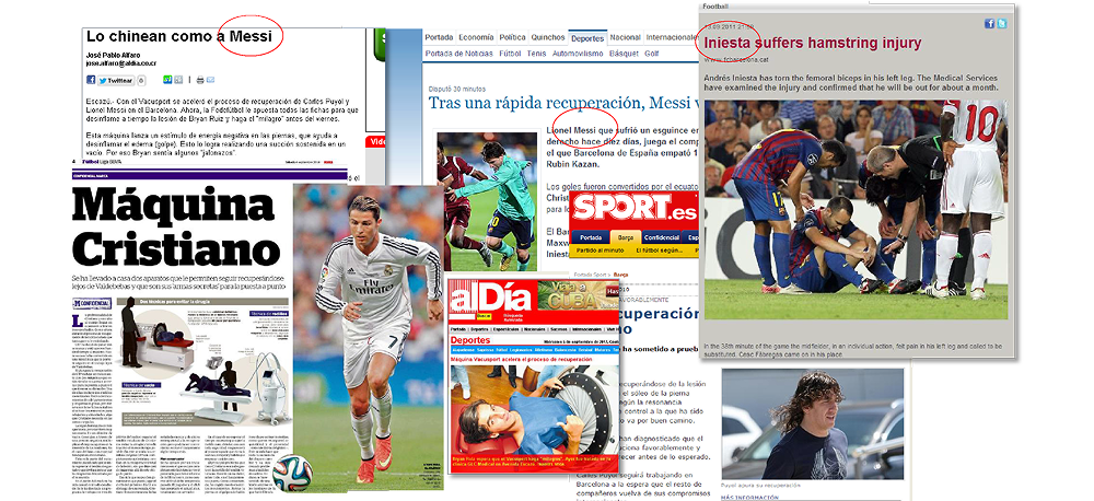 대표적인 예로 메시와 호날두, 푸욜, 이니에스타 선수가 재활 목적으로 사용하고 있습니다.
