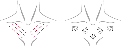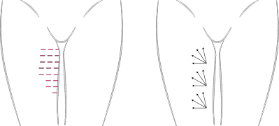 얇은 피부층의 탄력 저하 부위에 Linear 또는 Fanning 기법을
