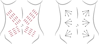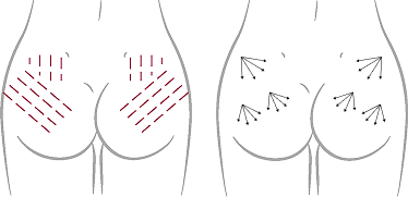 팔 안쪽 및 복부의 탄력 감소 부위에 일정 간격으로