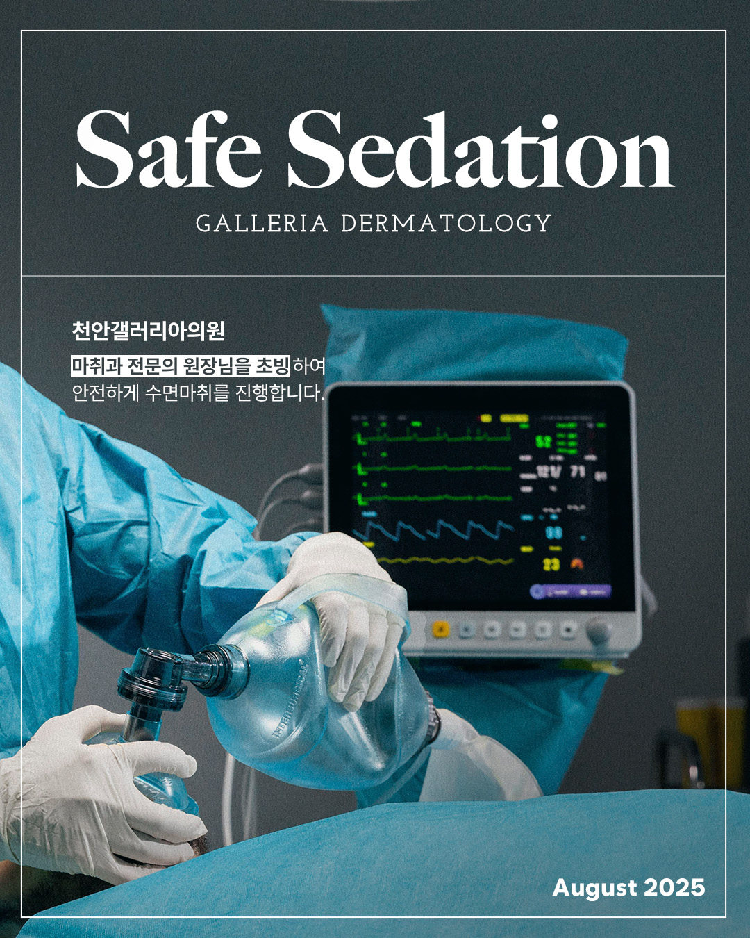 [매거진] 수면마취갤러리아의원은 마취과 전문의 협진 시스템을 통해 보다 안전하고 편안한 수면마취 환경을 제공합니다. Safety : 독일산 인퓨전 펌프로 약물 주입 속도 자동 제어 Monitor : 시술 전 과정 실시간 활력 모니터링 Personal : 개인 상태에 맞춘 2중 약물 조합 섬세한 설계와 철저한 모니터링,갤러리아의 모든 시술은 ‘안전’에서 시작됩니다.윤지원 원장님의 기록|2025.08.07 -