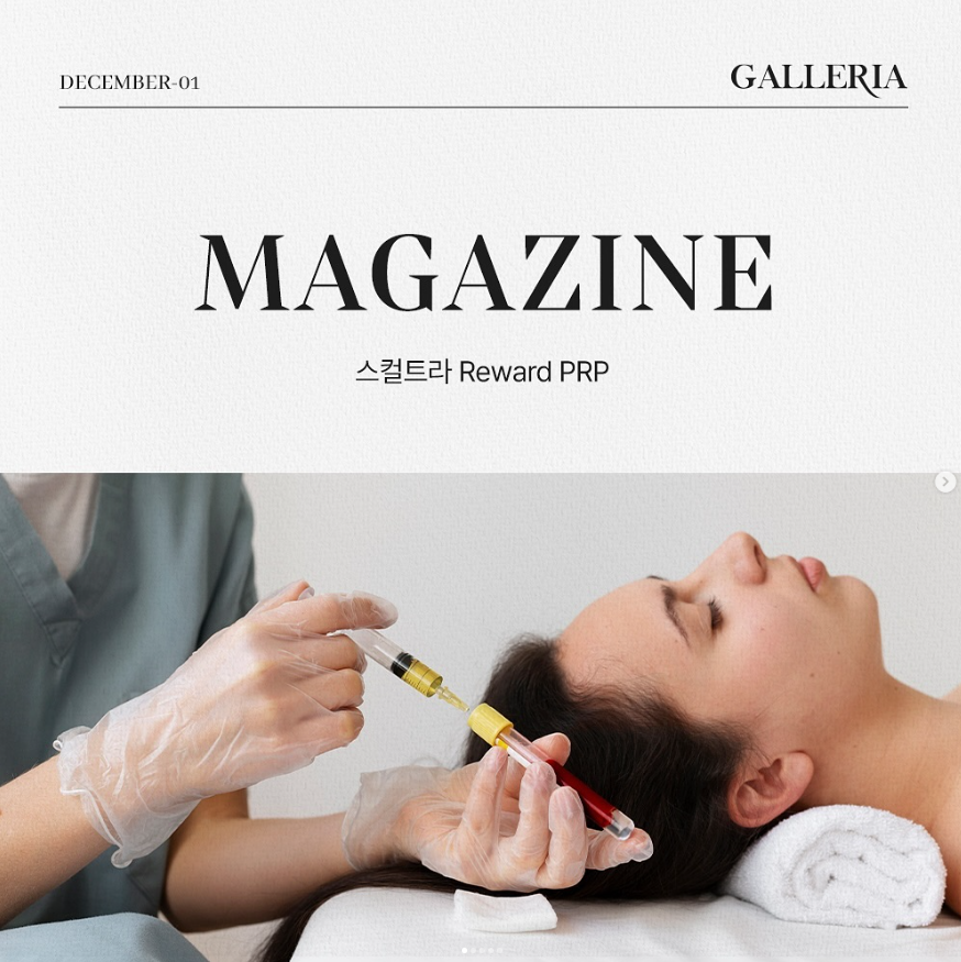 [매거진] 스컬트라 Reward PRP스컬트라는 세포 간 신호를 자극해 섬유아세포의 콜라겐 생성을 촉진하며, 시간이 지날수록 피부 탄력과 볼륨을 자연스럽게 회복시킵니다. 여기에 PRP의 성장인자가 더해지면, 줄기세포 활성과 진피 재생력이 강화되어 스컬트라의 효과가 오래 지속됩니다. 결과적으로 단순한 주름 개선을 넘어피부 결, 모공, 탄력, 톤을 동시에 개선하는 근본적 안티에이징이 완성됩니다.윤지원 원장님의 기록|2024.12.03 -