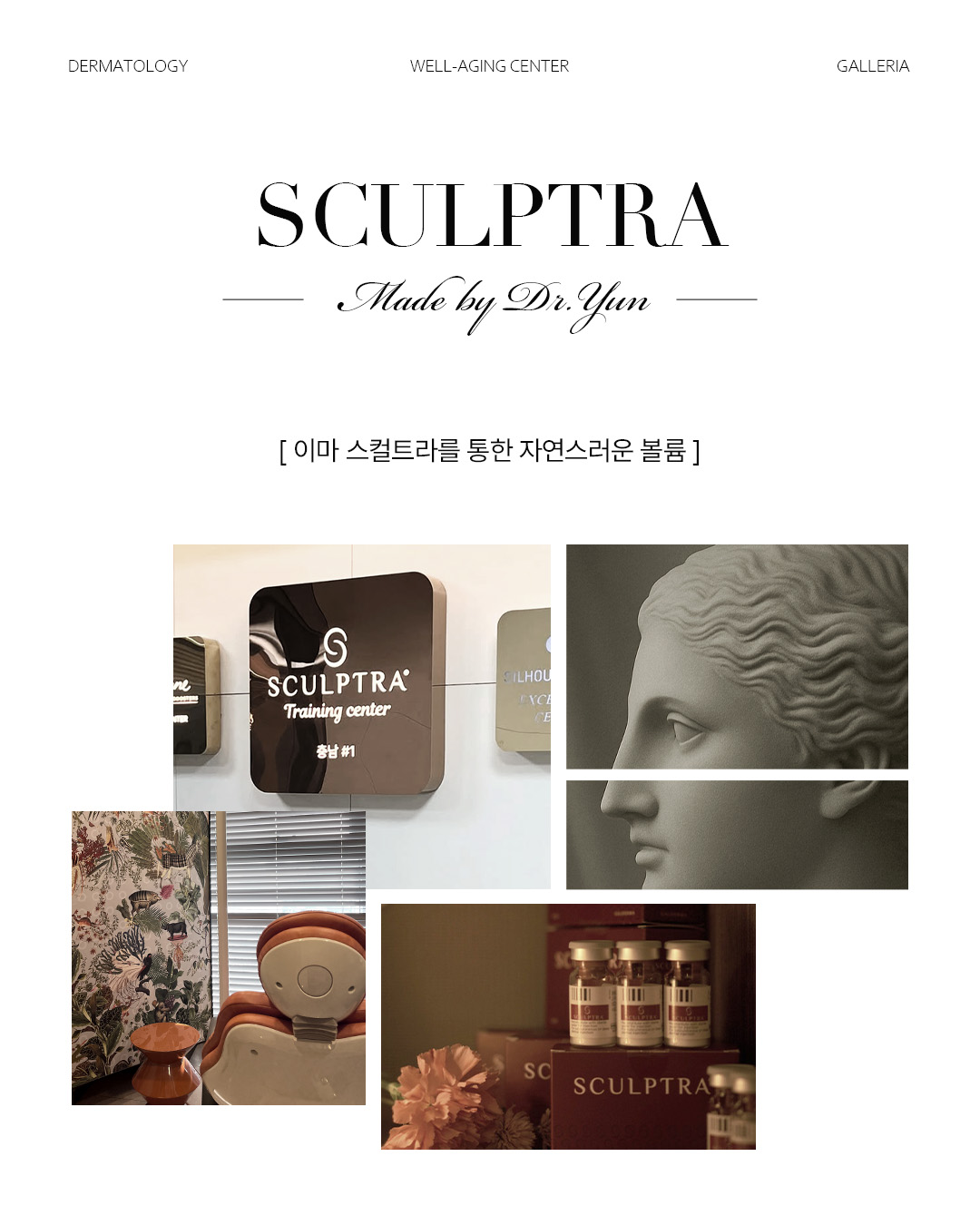 [매거진] 스컬트라갤러리아의원은 충남 유일의 스컬트라 트레이닝 센터로, 전국 의료진에게 스컬트라 시술을 지도하는 윤지원 대표원장이 직접 시술을 진행합니다. 갤러리아의 스컬트라는 단순히 ‘주입’이 아닌 섬세한 예측과 디자인의 시술입니다. 피부의 두께, 탄력, 볼륨의 균형을 고려해 자연스럽고 조화로운 리프팅 결과를 완성합니다. 모든 과정은 의료진이 직접 정확한 수화(희석) 과정을 거쳐 부작용을 최소화하고, 일정하고 안정적인 결과를 유지합니다. 또한 1회 시술 시 1 VIAL 원칙을 지켜 정품 그대로의 농도와 효과를 유지함으로써시간이 지나도 변함없는 탄탄한 피부 리프팅을 선사합니다.윤지원 원장님의 기록|2024.08.09 -
